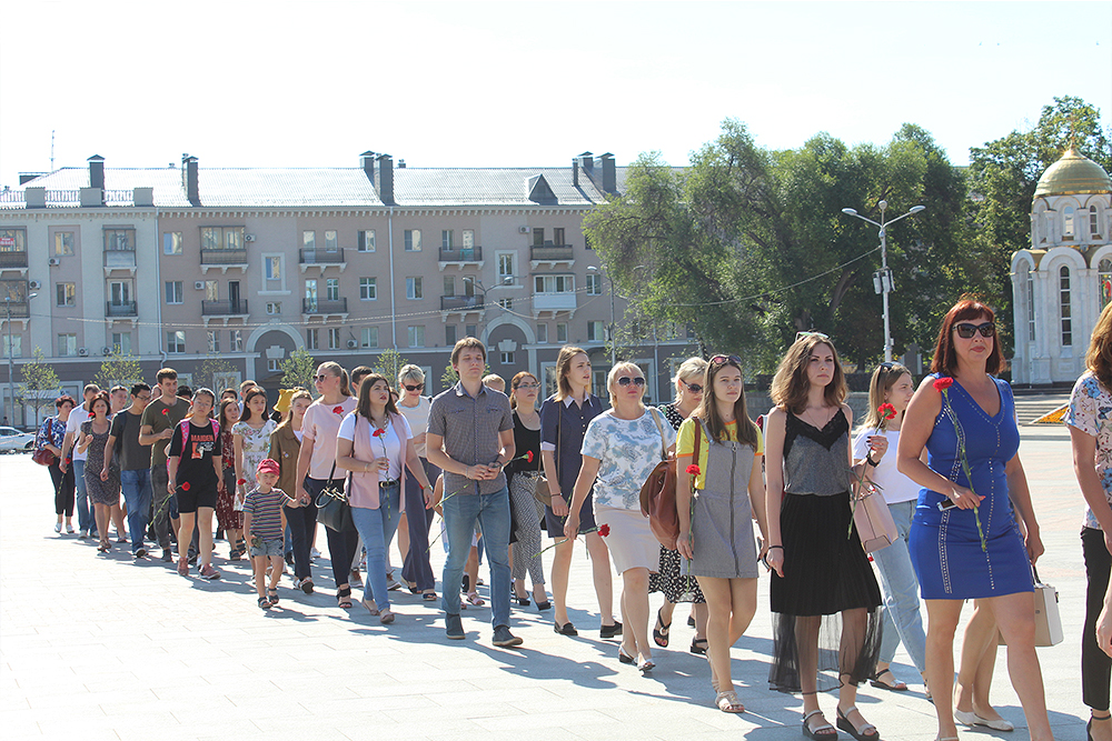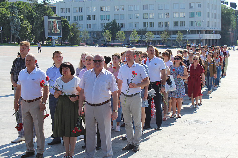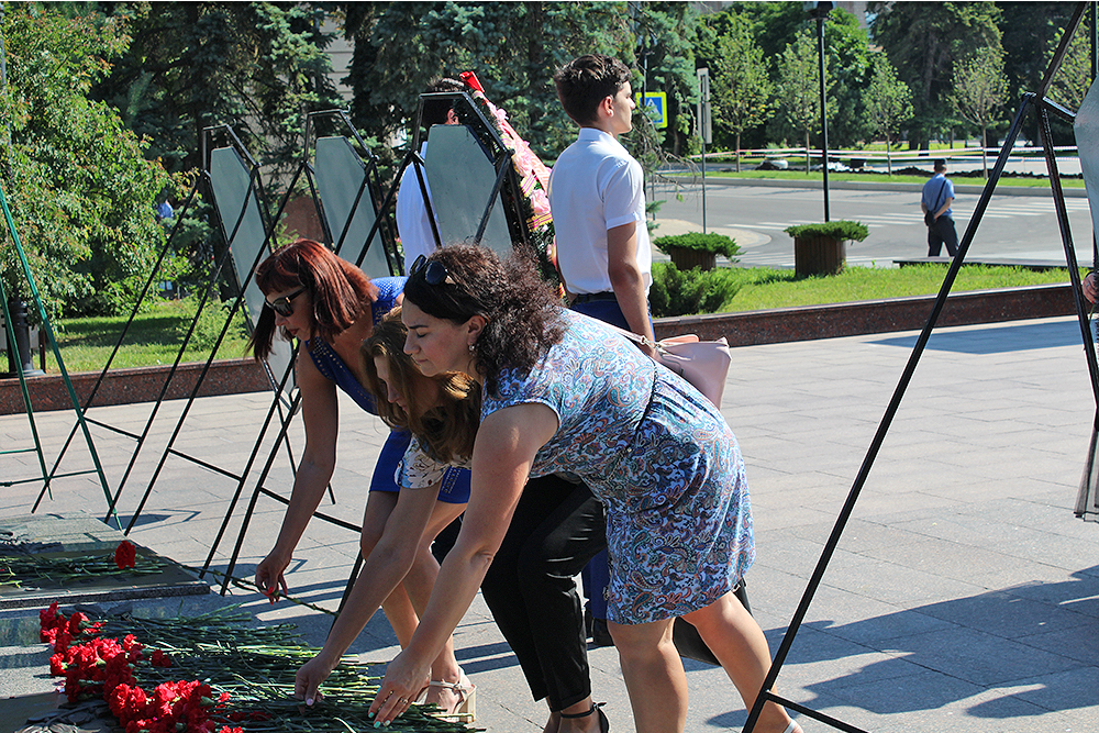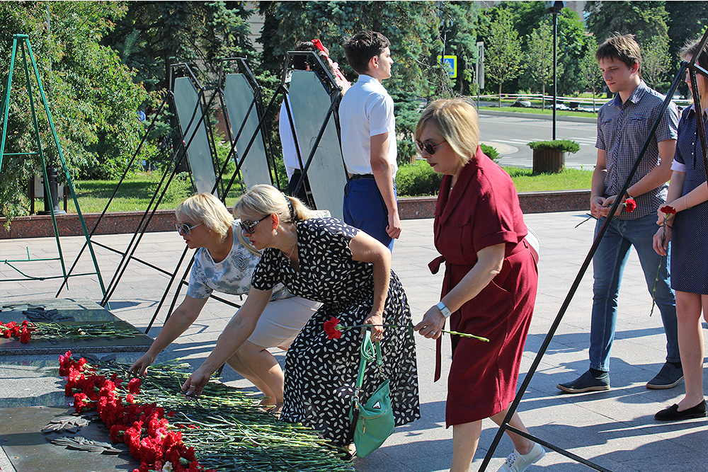 Делегация Белгородского государственного университета в составе ректората, профкома, сотрудников и студентов приняла участие в ежегодной акции «Волна памяти». Представители вуза возложили цветы и венки к мемориалу Скорбящей матери на Соборной площади Белгорода. Помощь в организации акции оказал профком НИУ "БелГУ".
