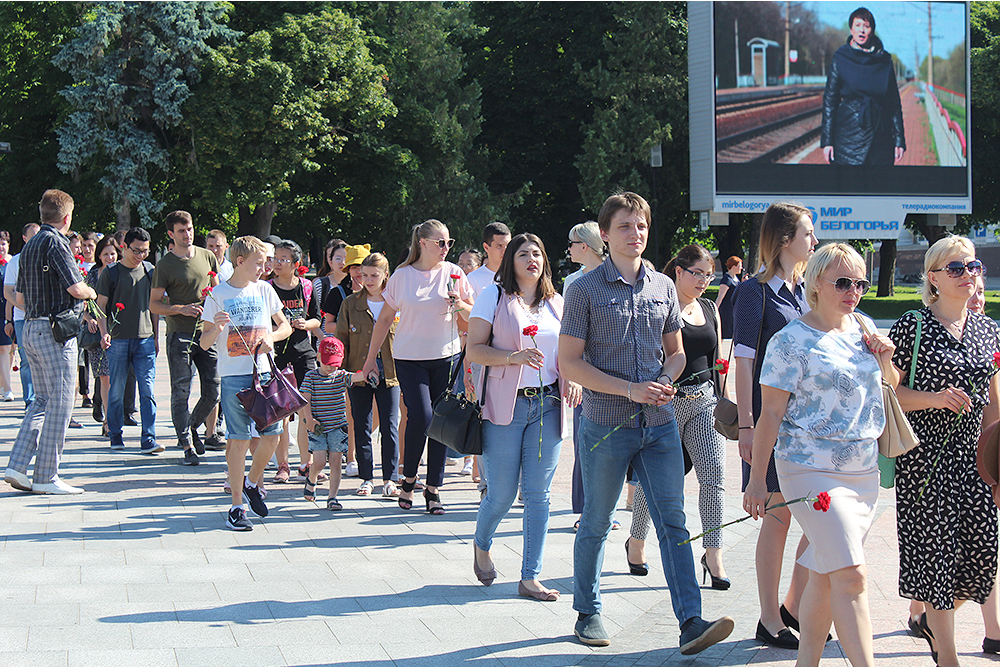 В этот день отдать дань памяти погибшим в годы Великой Отечественной войны пришли губернатор Белгородской области Евгений Савченко, митрополит Белгородский и Старооскольский Иоанн, политические и общественные деятели региона, представители организаций и учреждений Белгорода, многие белгородцы.