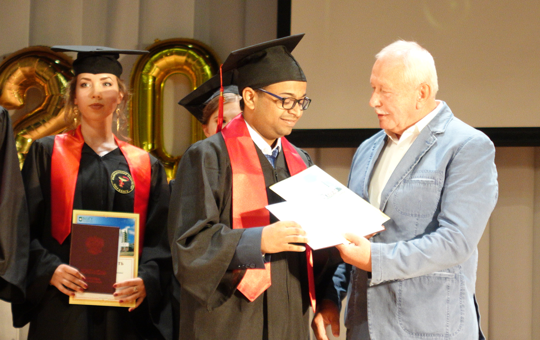 – Дорогие выпускники, вы выбрали одну из самых прекрасных профессий, которая заключается в том, чтобы помогать людям. Многие из вас вернутся в свои страны как послы света. Не забывайте родной университет! Вам предстоит долгий путь, потому что врачу всегда нужно совершенствовать своё мастерство, углублять свои знания и расширять кругозор. Огромное счастье, что вы учились в нашем институте! – напутствовал Владимир Фёдорович.