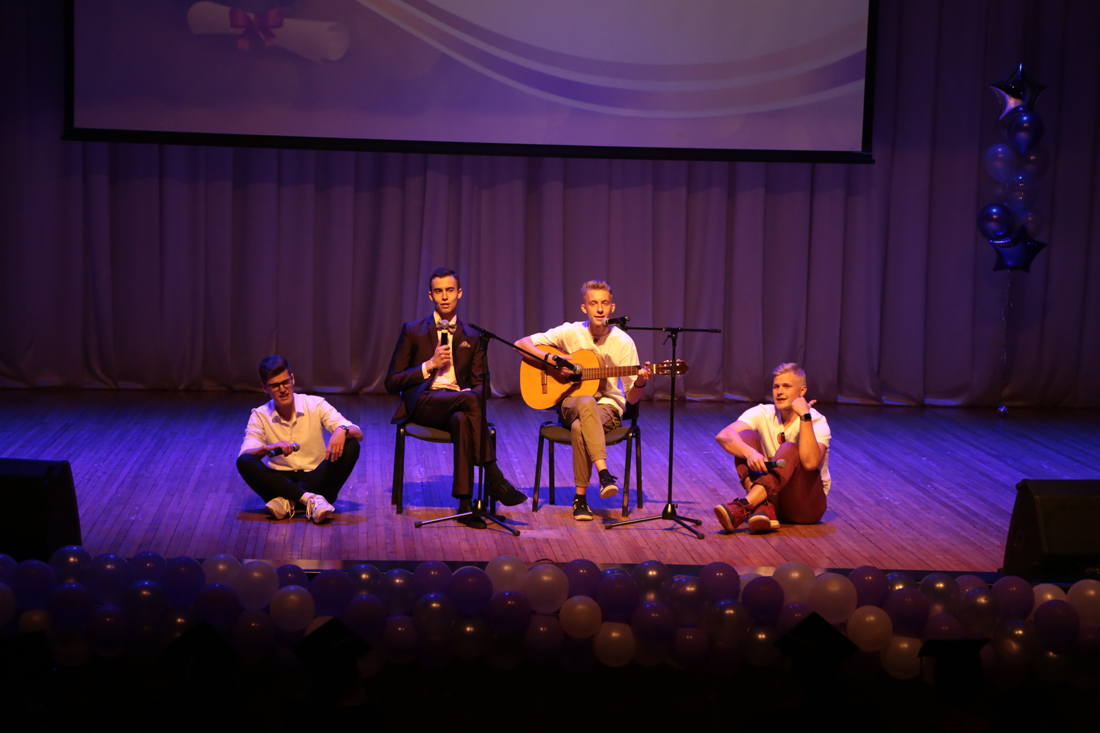 Творческим подарком для выпускников стали выступления студентов специальности «Стоматология» и команды КВН «Стомат-VIVAT». Они пели для гостей, шутили, играли на музыкальных инструментах. Выпускники тоже удивили гостей интересными видео о студенческой жизни группы.
