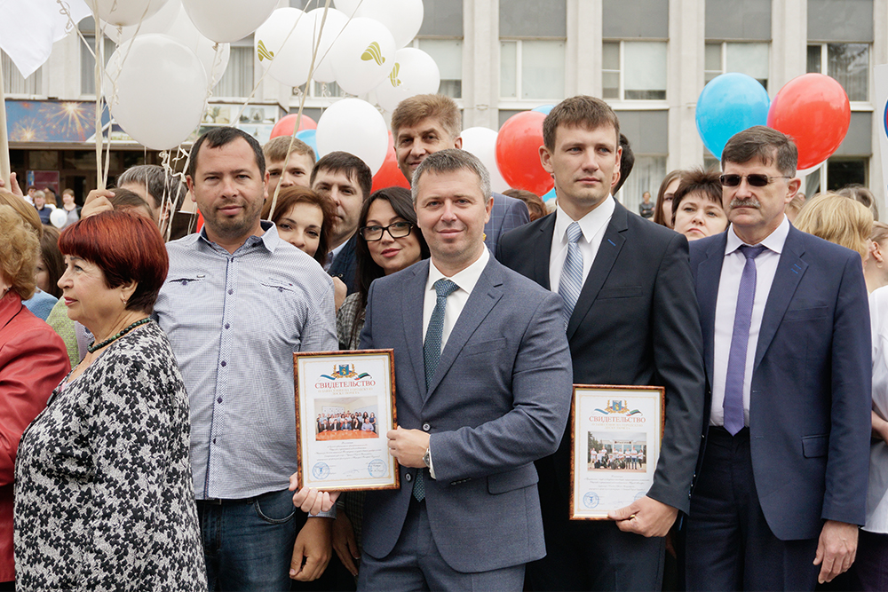 Среди награжденных – коллектив ООО «Институт высоких технологий Белгородского государственного университета» (ИВТ БелГУ), ставший победителем в номинации «Лучший субъект малого предпринимательства». Свидетельство из рук мэра города получили генеральный директор коллектива Сергей Черников и председатель профсоюзной организации НИУ «БелГУ» Валерий Тимофеев.