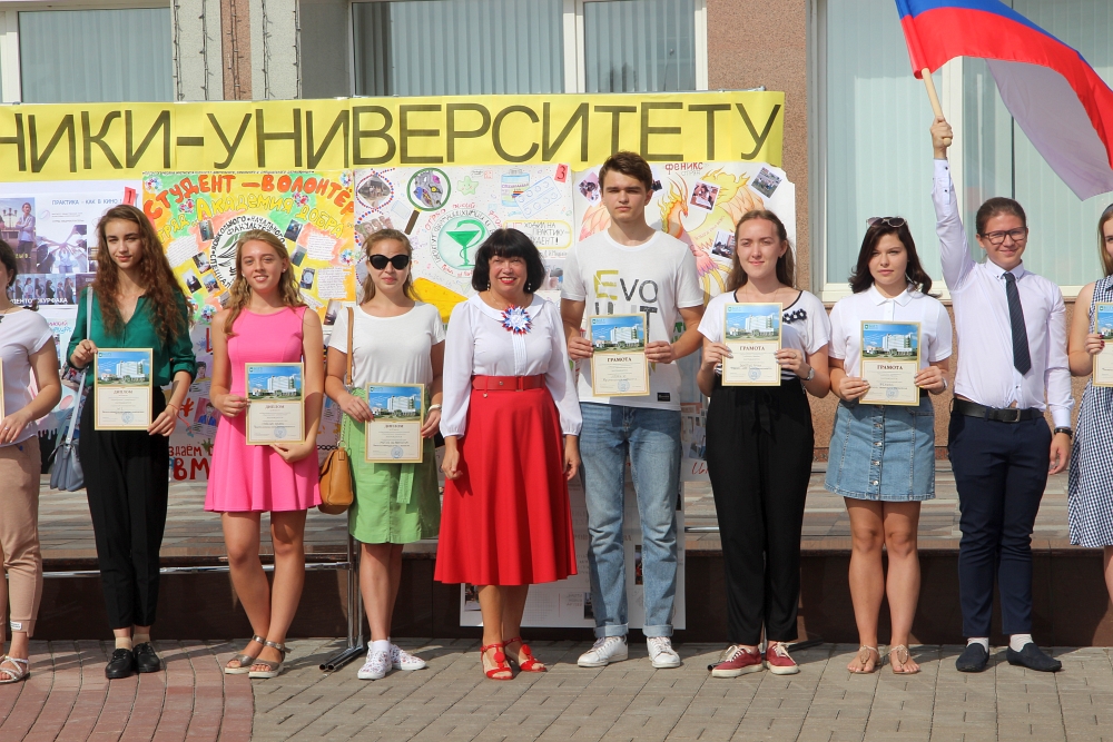 Проректор по воспитательной работе и молодёжной политике, кандидат исторических наук, доцент Светлана Острикова поблагодарила волонтёров, которые активно участвовали в подготовке университета к новому учебному году, за их труд, и сообщила об итогах общеуниверситетского конкурса плакатов «Первокурсники – Университету!». Светлана Александровна также вручила почётные дипломы и грамоты волонтёрским отрядам. Первое место жюри присудило отрядам «Медиаволонтёры» (ИОНиМК) и «Академия добра» (факультет дошкольного, начального и специального образования Педагогического института). Второе место – у отрядов «In Vivo» (медицинский институт) и «Полиглоты» (ИМКиМО), диплом за третье место вручён отрядам «Foreign squard» (факультет иностранных языков Педагогического института) и «Motus ad Perfectum» (институт фармации, химии и биологии).