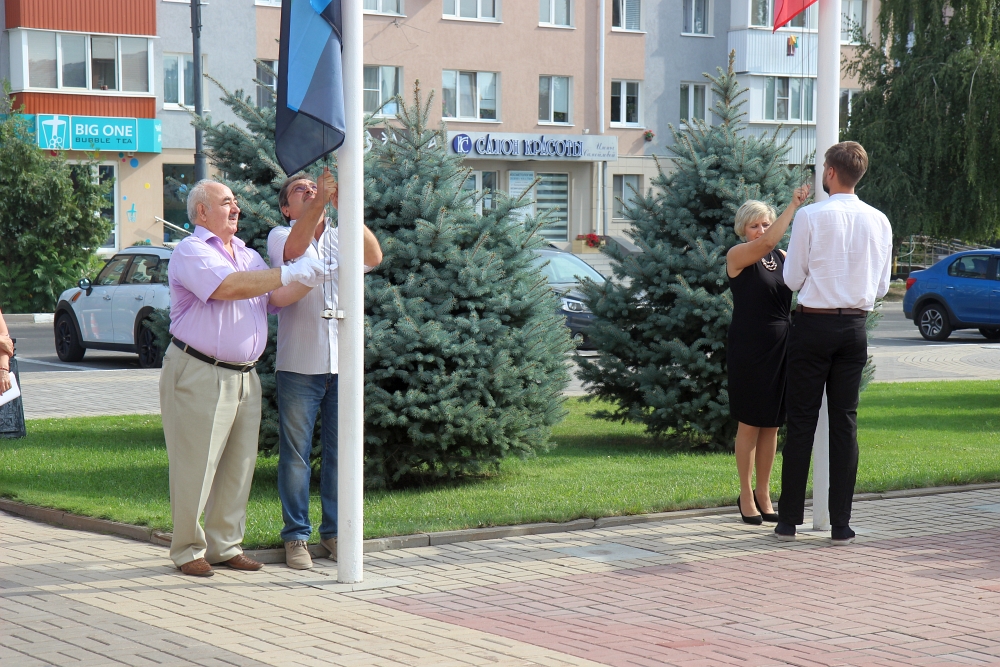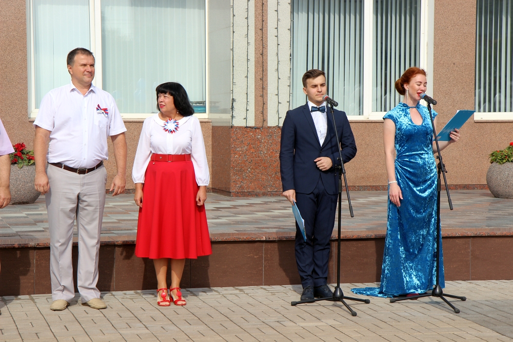 На линейке представители разных поколений подняли три флага на флагштоках университета. Председатель Совета ветеранов войны и труда университета Юрий Питинов поднял Государственный флаг Российской Федерации, флаг Белгородской области выпала честь поднять представителю студенческого совета «Союз студентов», магистранту института общественных наук и массовых коммуникаций Ярославу Воробьёву, а флаг Белгородского государственного национального исследовательского университета – студентке 1 курса института фармации, химии и биологии Екатерине Мирошниковой.