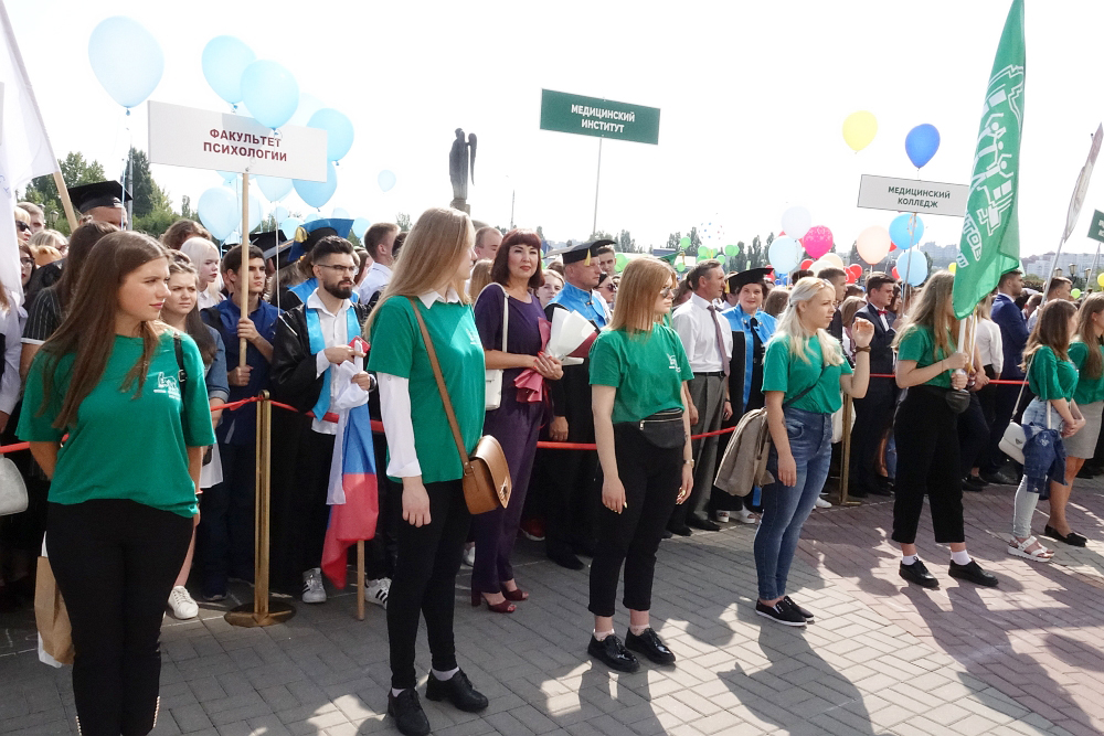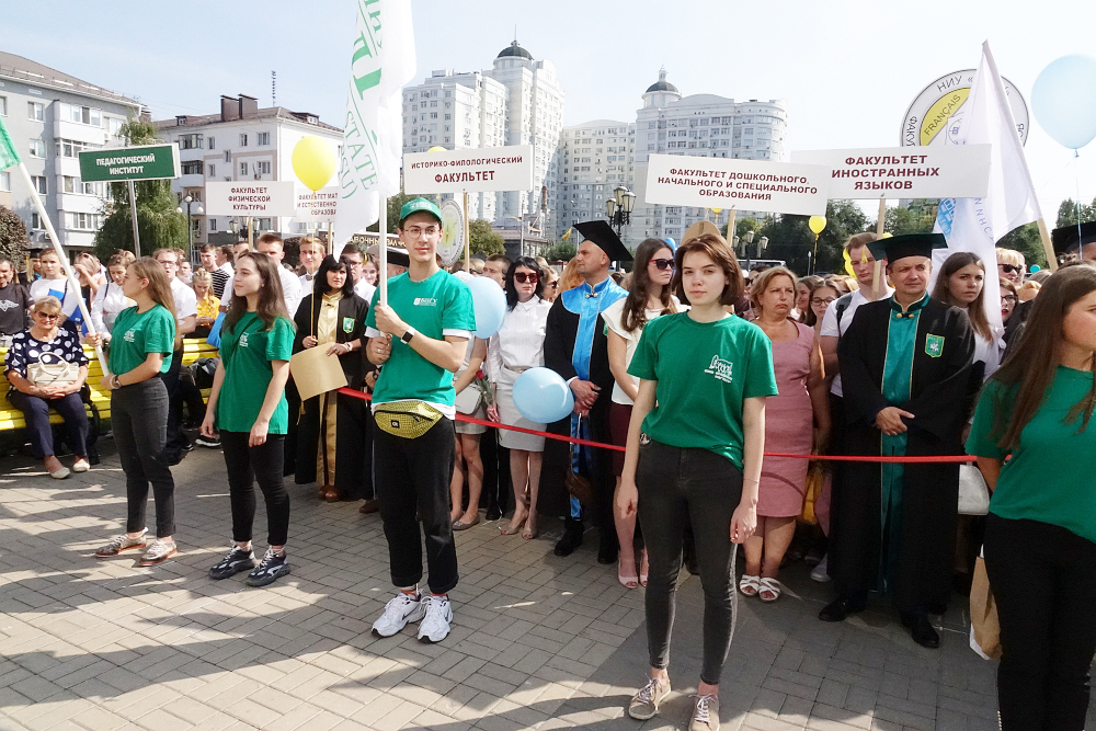 Представители руководства НИУ «БелГУ», члены учёного совета, преподаватели, студенты выпускных курсов завершили традиционное шествие на университетской площади, где состоялась торжественная линейка. В ней приняли участие и первокурсники университета. Гостями праздника стали представители правительства области, работодатели и социальные партнёры вуза. Они поздравили первокурсников, их родителей, выпускников и преподавателей с Днём знаний.