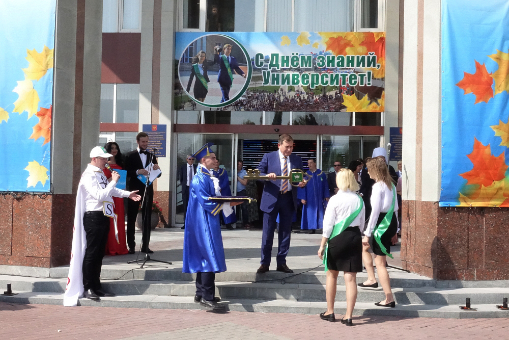 Первокурсники произнесли традиционную клятву, оформившую их символическое вхождение в университетскую семью. Ректор вручил им ключ к знаниям, а студенты старших курсов – студенческий билет.