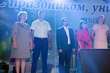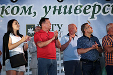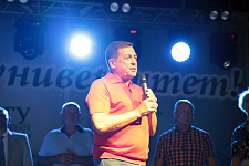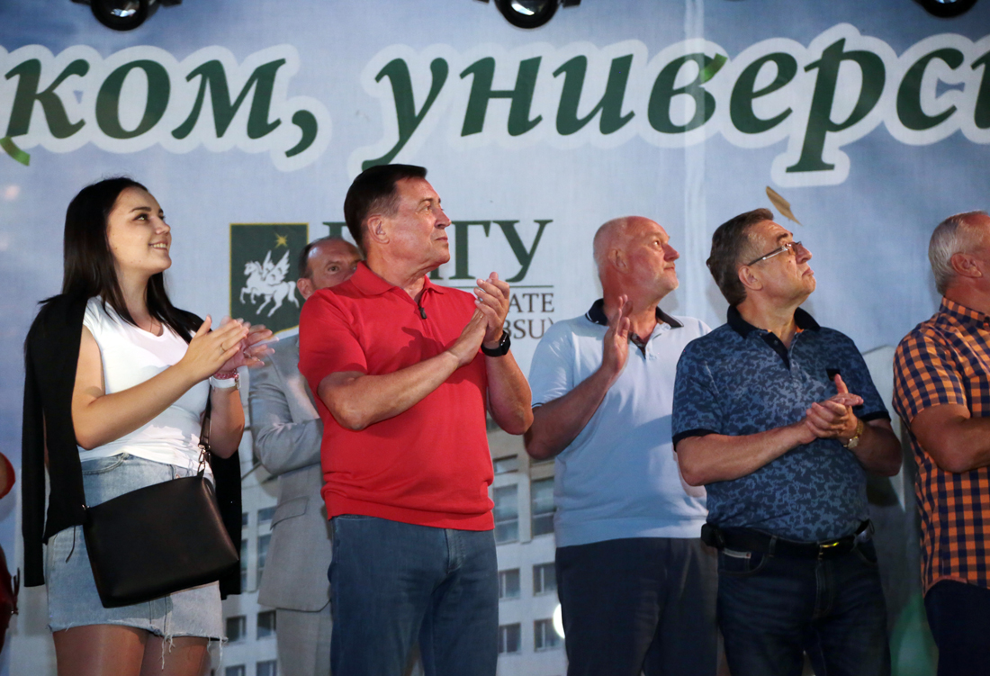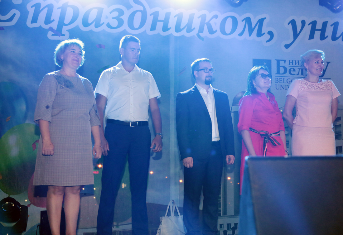 После выступления группы для поздравления студентов с началом нового учебного года на сцену поднялись ректор НИУ «БелГУ», профессор Олег Полухин, представители ректората и директора институтов.