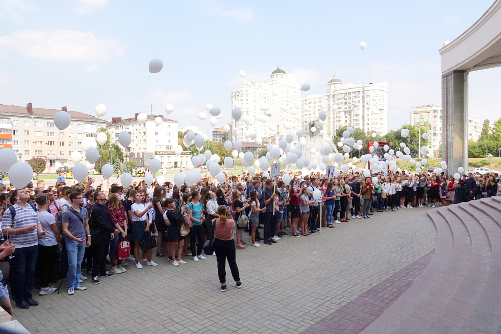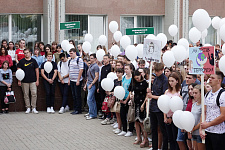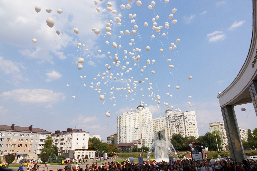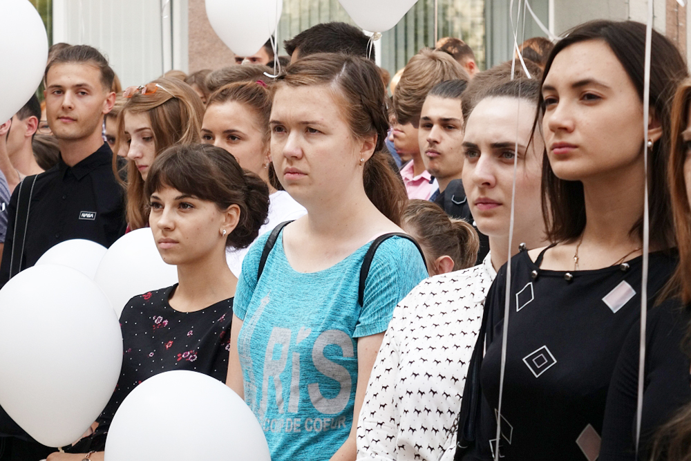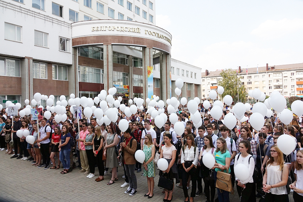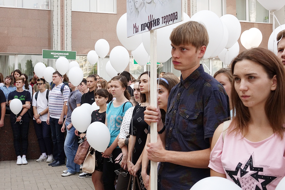 На площади перед молодёжным культурным центром Белгородского госуниверситета собрались студенты и преподаватели вуза, чтобы почтить память погибших в террористических актах.
