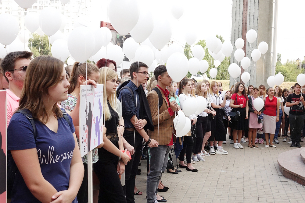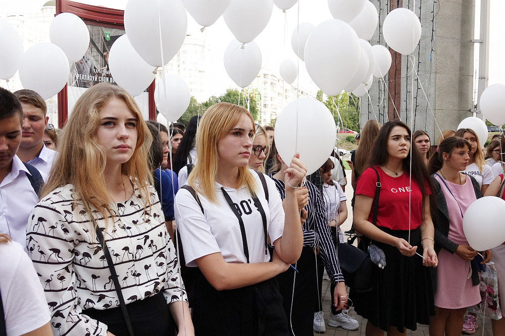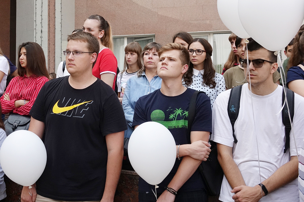 Память жертв террористических актов почтили минутой молчания. Участники митинга запустили в небо белые шары как символ их бессмертных душ.