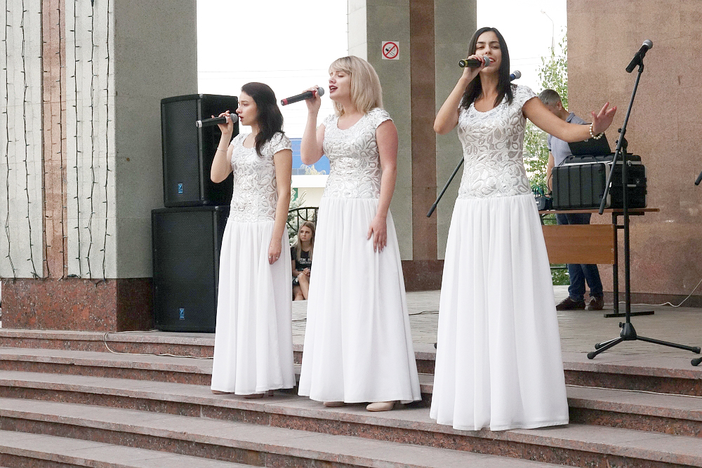 Композицию митинга «Мы против террора», посвящённого Дню солидарности в борьбе с терроризмом, пронизывали театрализованные элементы и проникновенные номера в исполнении коллективов МКЦ НИУ «БелГУ».