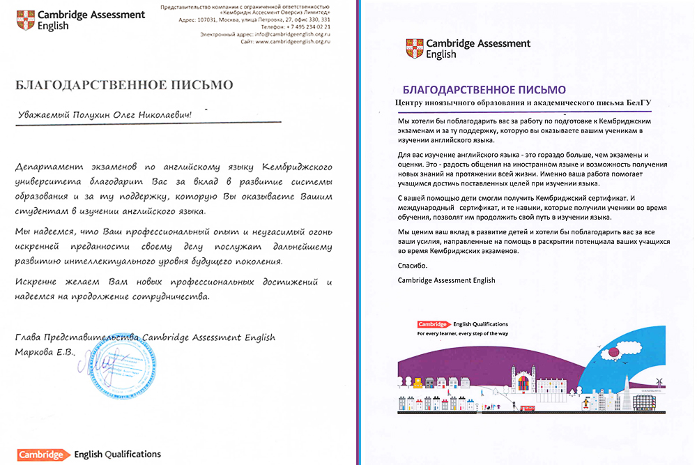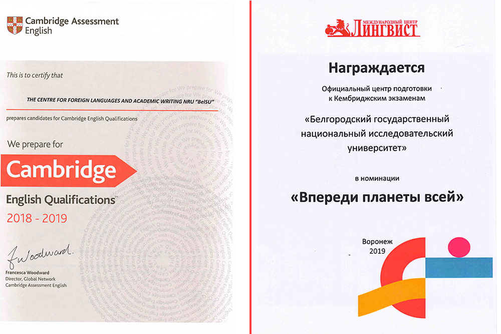 Центр иноязычного образования и академического письма НИУ «БелГУ» активно сотрудничает с центром «Лингвист» с 2016 года и уже второй год является официальным центром подготовки к Кембриджским экзаменам. На площадке Белгородского государственного университета проводятся кембриджские экзамены, другие совместные мероприятия с Международным Кембриджским ресурсным центром «Лингвист».