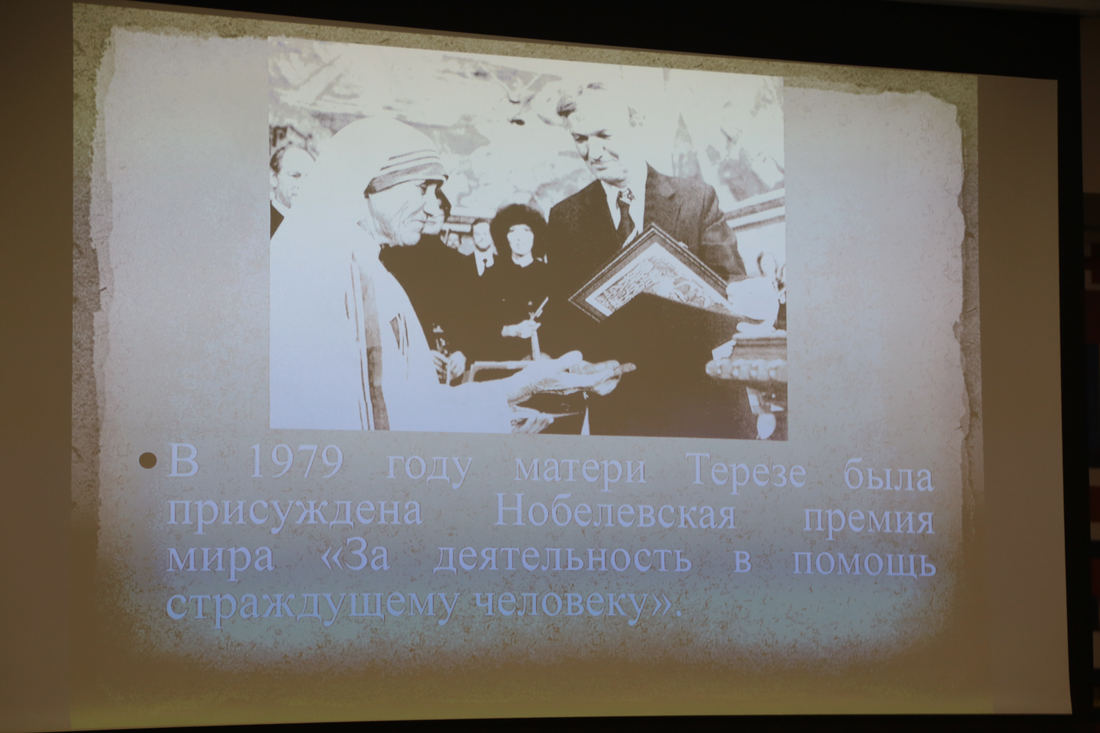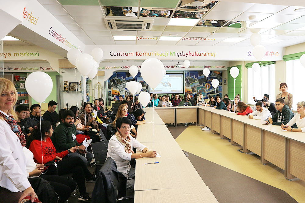 В Центре межкультурной коммуникации в этот день посланцы иностранных землячеств представили доклады о лауреатах Нобелевской премии мира. Участники вокально-творческого коллектива "Звездный АлгоРитм" исполнили песню "Пусть миром правит любовь".