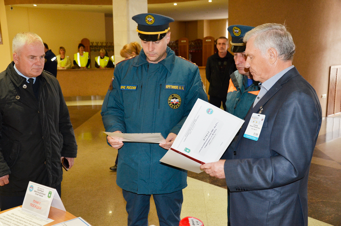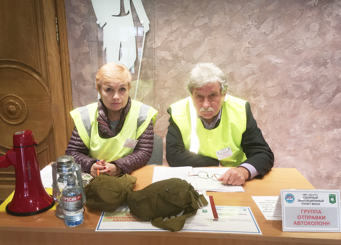 При отработке вопросов посадки и отправки эвакуируемых автоколонной в безопасный район привлекались пассажирский автобус и скорая помощь автохозяйства НИУ «БелГУ». Представитель МЧС России (г. Москва) Андрей Крутиков, заместитель начальника ГУ МЧС России по Белгородской области Вадим Лисовский и начальник МКУ «Управление ГОЧС города Белгорода» Виктор Баранов положительно оценили действия и готовность личного состава сборного эвакуационного пункта №52А к выполнению задач по предназначению, его оснащённость необходимой документацией, оборудованием и средствами защиты. Отметим, что системе гражданской обороны Российской Федерации 4 октября 2019 года исполняется 87 лет со дня основания.
