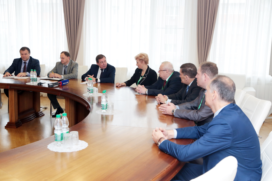 Перед открытием научного форума учёные встретились с ректором НИУ «БелГУ», доктором политических наук, профессором Олегом Полухиным и заместителем губернатора Белгородской области Олегом Абрамовым.