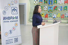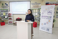 Спикер встречи заместитель коммерческого директора ООО «НИЦ ИНФРА-М» Анастасия Айдакова рассказала об ассортименте выпускаемых холдингом книг и журналов, о ценовой политике и использовании современных информационных технологий и системы логистики, отметив высокий профессионализм сотрудников центра ИНФРА-М.