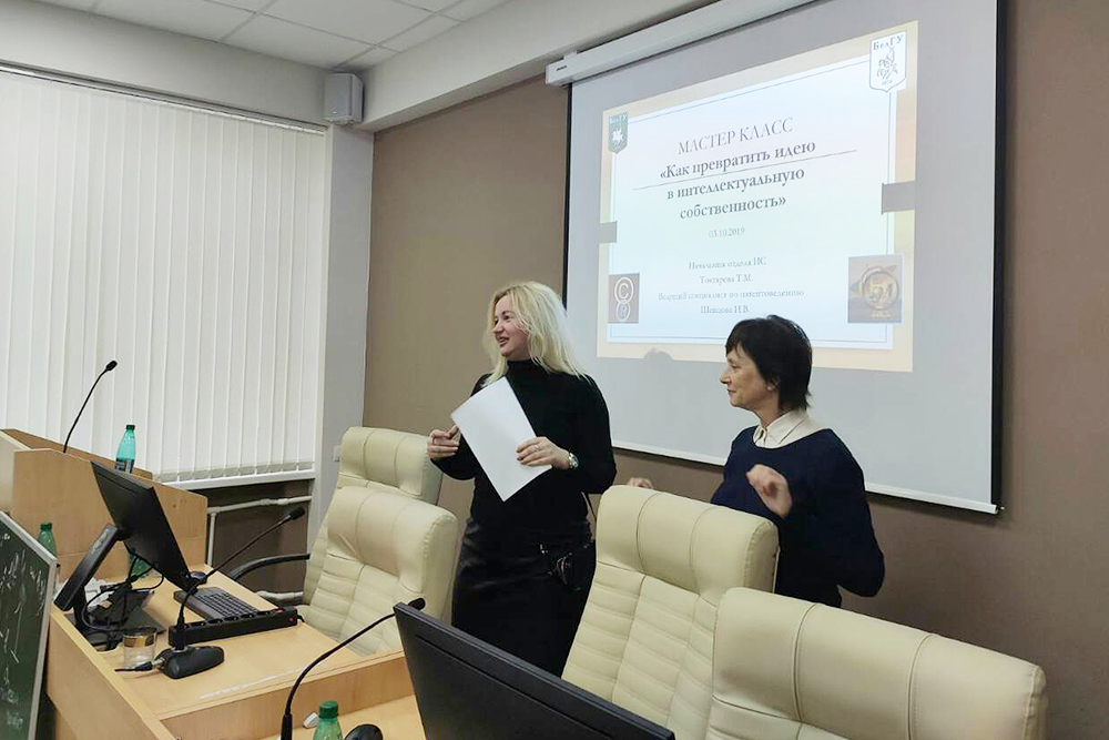 Представители отдела интеллектуальной собственности регионального центра интеллектуальной собственности департамента научно-исследовательской работы: начальник отдела Татьяна Токтарева и ведущий специалист по патентоведению Ирина Шевцова провели для обучающихся открытой инжиниринговой школы НИУ «БелГУ» мастер-класс на тему: «Как превратить идею в интеллектуальную собственность».