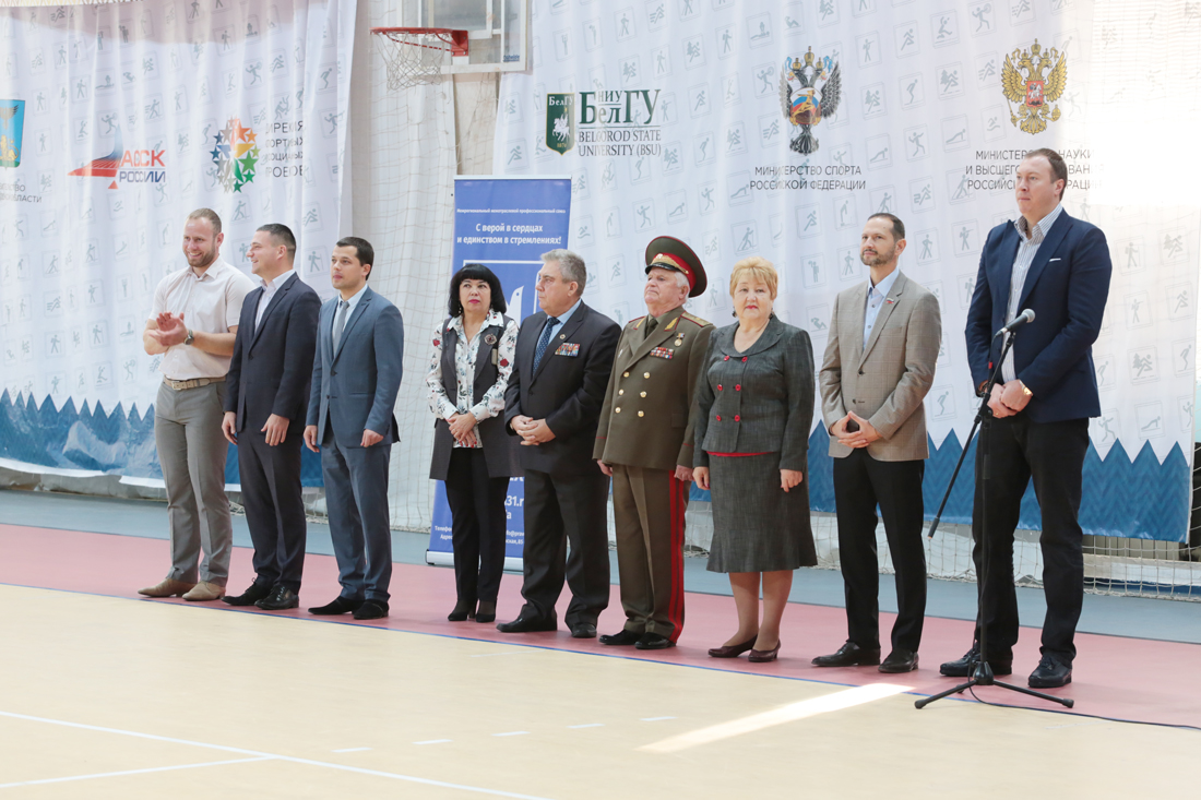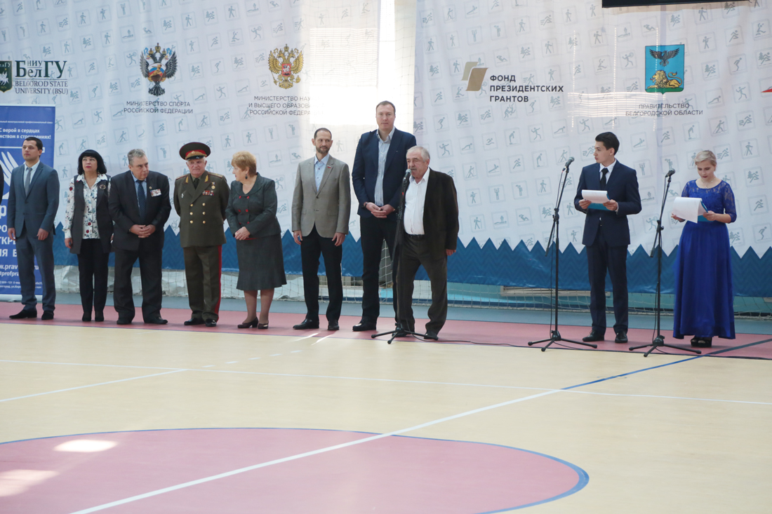 Волейболистов от имени ректора НИУ «БелГУ», профессора Олега Полухина приветствовала проректор по воспитательной работе и молодёжной политике Светлана Острикова. Слова приветствия и пожелания хорошей игры ветеранам сказали – Олимпийский чемпион Тарас Хтей, заместитель председателя комитета по культуре и спорту областной Думы Александр Щеглов, заместитель начальника управления физической культуры и спорта Роман Малахов и председатель региональной организации ветеранов Наталья Звягинцева. О регламенте турнира участникам рассказал вице-президент федерации волейбола «Белогорье», главный судья соревнований Юрий Слонов.