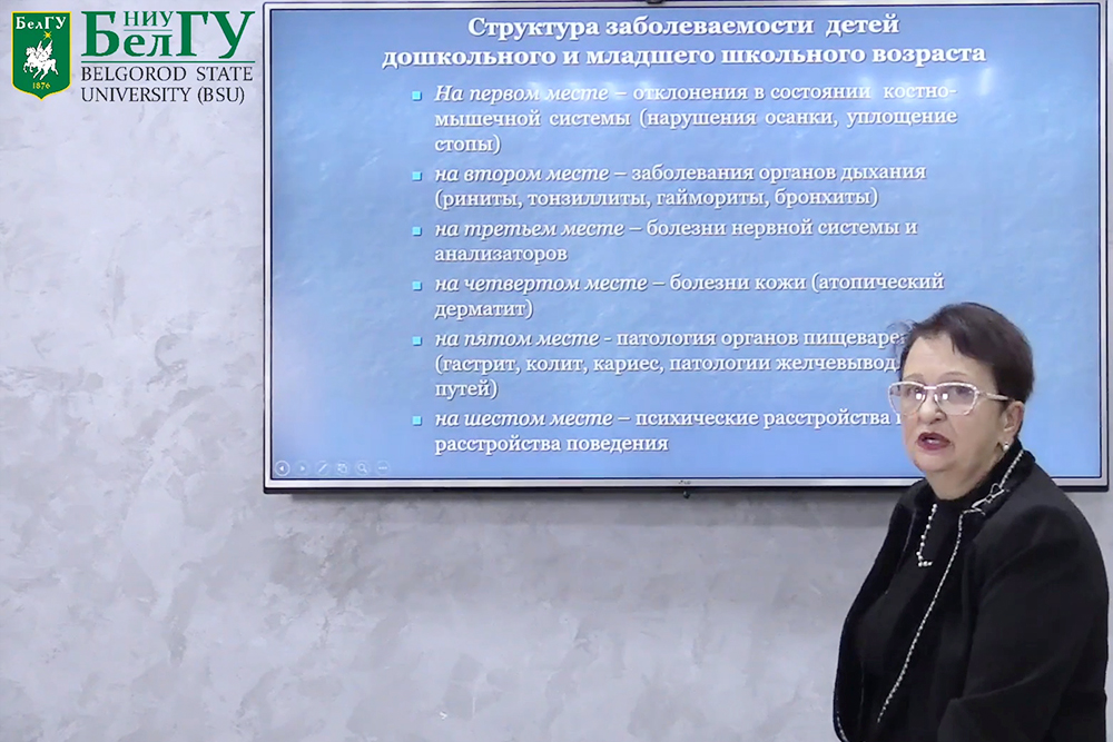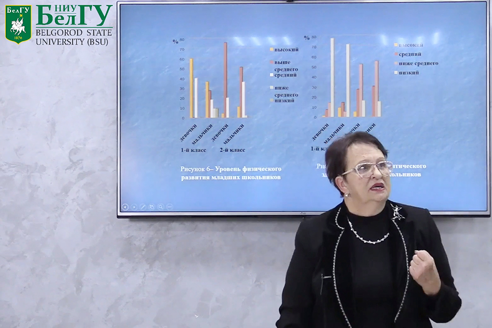 Профессор НИУ «БелГУ» предложила обсуждение сложившейся ситуации и представила результаты собственных исследований по физическому развитию, соматическому здоровью, психоэмоциональному состоянию, адаптивным особенностям детей дошкольного, младшего школьного возраста и подростков. В ходе лекции были рассмотрены проблемы дезадаптации детей, в том числе школьников с нарушениями речи, с разными типами профилей латеральной организации мозга, предложены коррекционные мероприятия, обсуждена их эффективность.