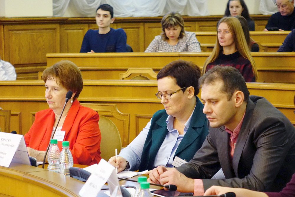 В зале учёного совета НИУ «БелГУ» для обсуждения проблем по охране и использованию результатов интеллектуальной деятельности собрались: руководитель программ Департамента стран с развитой и переходной экономикой ВОИС Саидахмад Азимов, национальный руководитель программ Представительства ВОИС в РФ Александра Румянцева, проректор Российской государственной академии интеллектуальной собственности Вероника Смирнова, специалисты НИУ «БелГУ» и других вузов Белгородской области, студенты, аспиранты, представители малых инновационных предприятий (МИП).