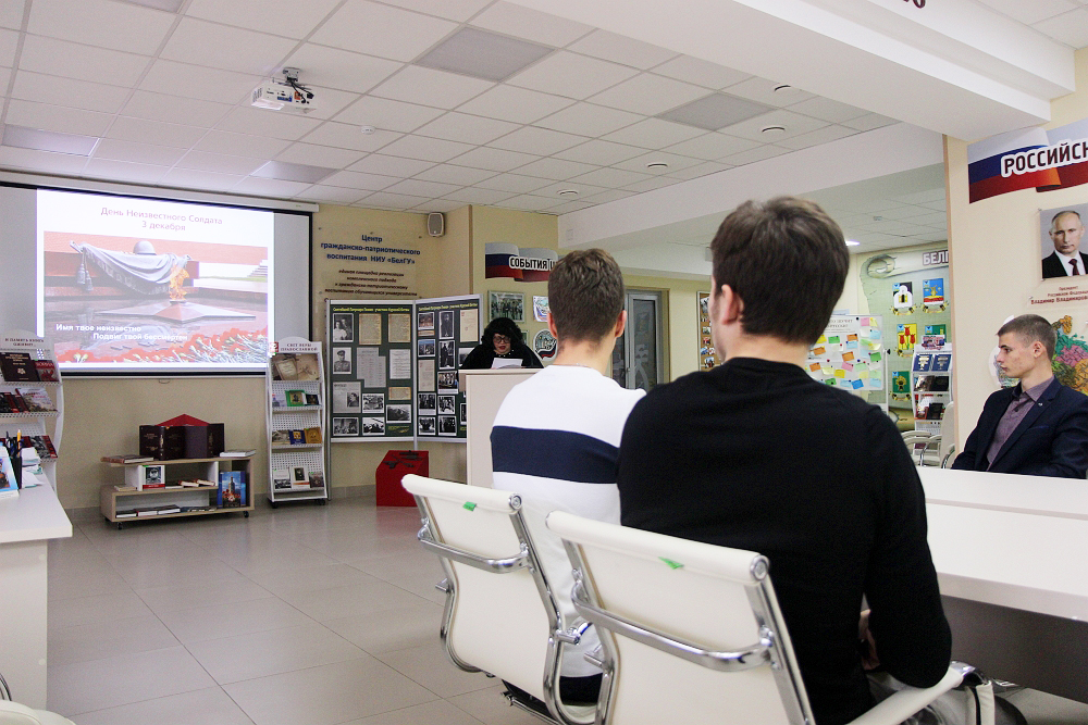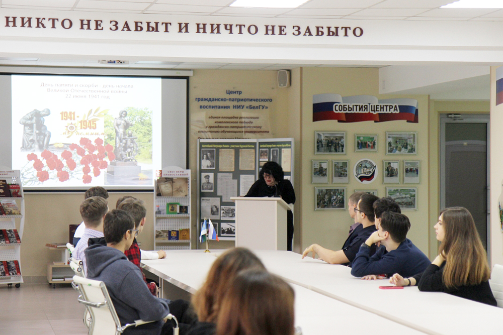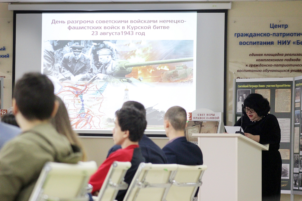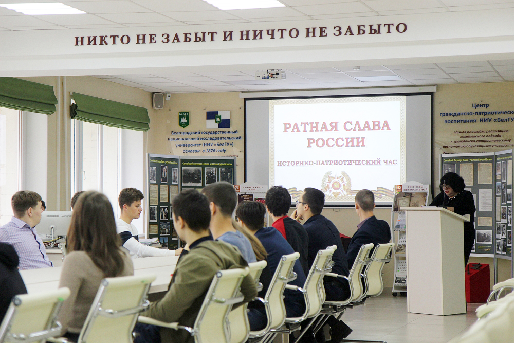 В Центре гражданско-патриотического воспитания НИУ «БелГУ» состоялся историко-патриотический час «Ратная слава России», посвящённый дням воинской славы и памятным датам России и 75-летию Победы советского народа в Великой Отечественной войне
