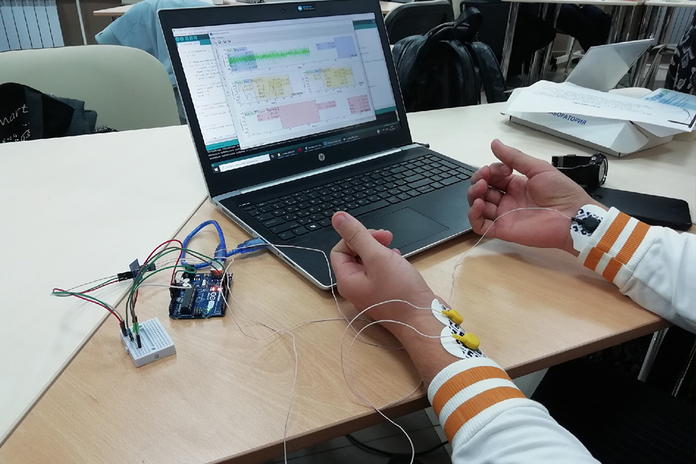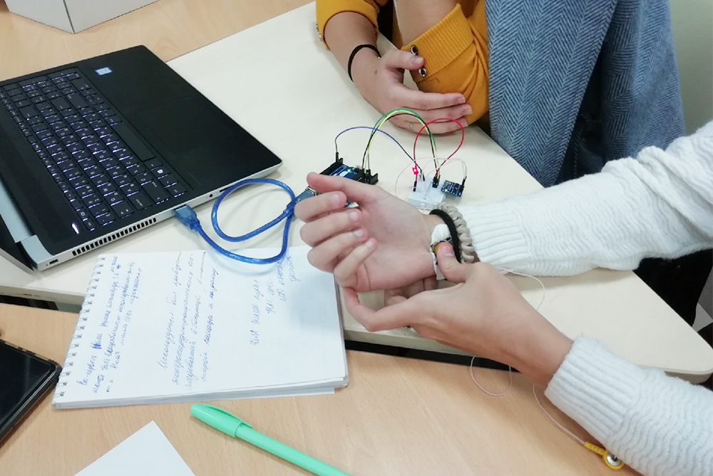 – В ходе выполнения задания учащиеся собирали установку, считывающую показатели пульса с датчика ЭКГ в режиме реального времени и создавали на этой основе устройство, в котором при повышенной частоте сердцебиения должен был ярче светиться светодиод. На решение задачи было отведено пять часов. Задача была – предложить своё уникальное решение, – рассказала директор научно-проектного центра когнитивных наук и нейротехнологий НИУ «БелГУ» Мария Ситникова.