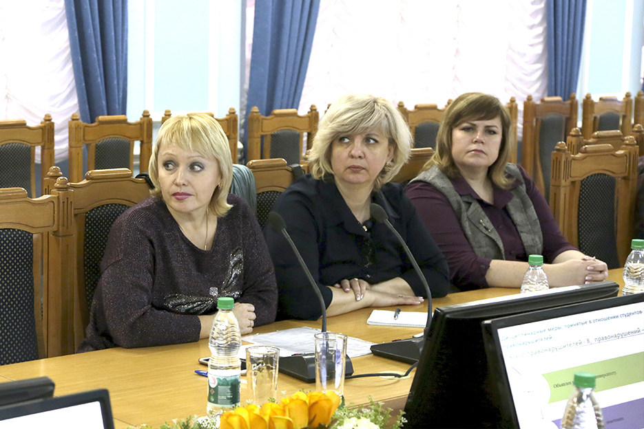 Председатель совета, проректор по воспитательной работе и молодёжной политике Светлана Острикова сделала анализ правонарушений, совершенных студентами за ноябрь-декабрь этого года, отметив их снижение. Светлана Александровна акцентировала внимание на организации дежурств кураторов в праздничные дни и каникулярный период.