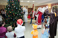 В холле молодёжного культурного центра, у новогодней ёлки, ребята водят хороводы, играют в игры и получают подарки и поздравления от Деда Мороза. Представление у новогодней ёлки проводят студенты – участники театральной студии под руководством Петра Харлова. Новогоднюю ёлку в МКЦ посетят более восьмиста пятидесяти детей, преподавателей, студентов университета.