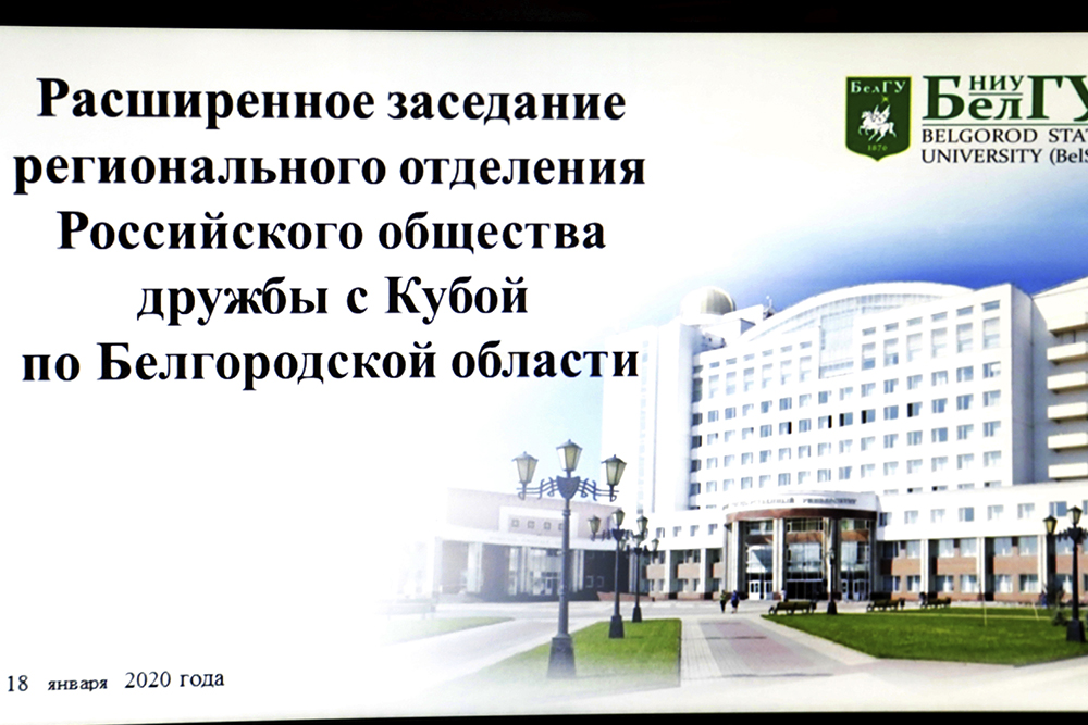 В Белгородском государственном университете прошло расширенное заседание Белгородского отделения Российского общества дружбы с Кубой. Региональное отделение РОДК создано в декабре 2019 года на базе НИУ «БелГУ» в рамках всероссийского проекта, направленного на укрепление связей между Россией и Кубой. Сопредседателями отделения избраны заместитель начальника департамента внутренней и кадровой политики Белгородской области - начальник управления культуры области Константин Курганский и проректор по международному сотрудничеству НИУ «БелГУ» Владислав Кучмистый.
