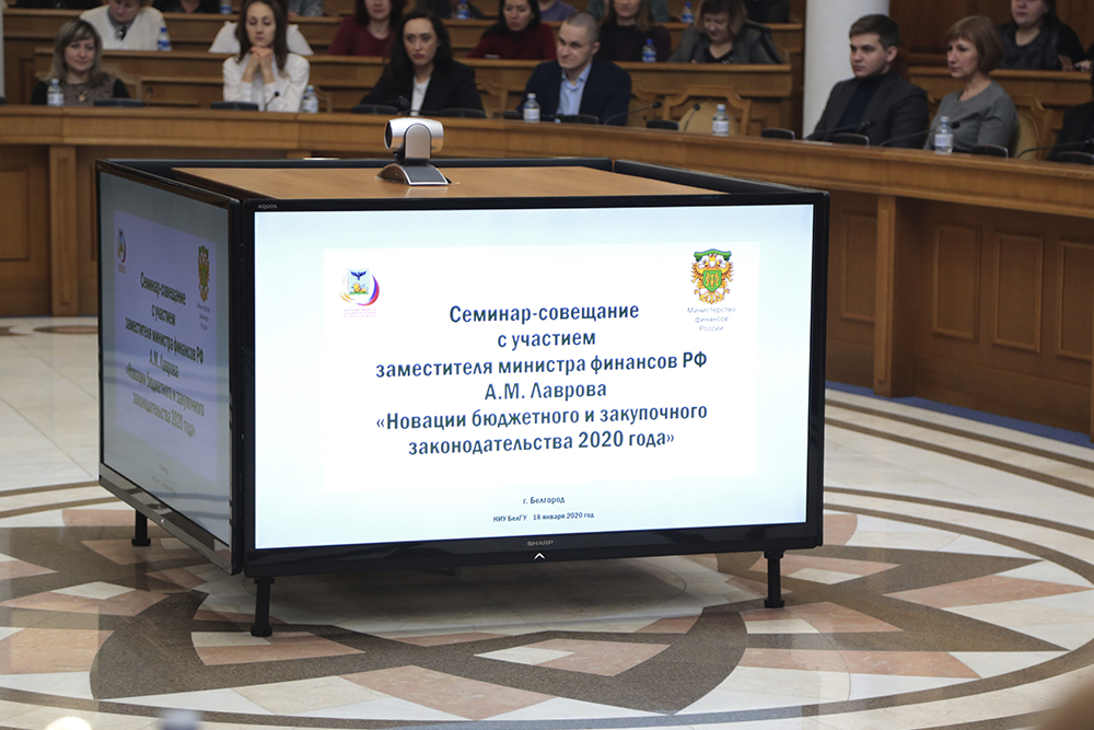 В церемонии подписания соглашения между вузом и РОДК принял участие заместитель губернатора Белгородской области – начальник департамента финансов и бюджетной политики области Владимир Боровик, который затем проводил заместителя министра финансов РФ в зал заседаний учёного совета НИУ «БелГУ», где А.М. Лавров провел семинар-совещание на тему: «Новации бюджетного и закупочного законодательства 2020 года» с представителями департамента финансов и бюджетной политики Белгородской области, всех муниципальных финансовых органов региона, Федерального казначейства, Главных распорядителей бюджетных средств.