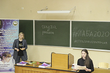 Куратор «Открытой лабораторной» в НИУ «БелГУ», начальник отдела научно-исследовательской работы студентов и молодых учёных департамента научно-исследовательской работы НИУ «БелГУ» Марианна Беняш сделала подробный разбор заданий с комментариями к ответам для самопроверки участников. Активисты студенческого научного общества университета Дилара Мамедова и Алёна Захарова провели для гостей викторину, посвящённую 75-летнему юбилею Великой Победы.
