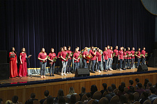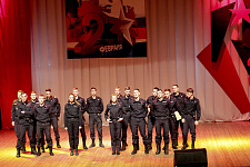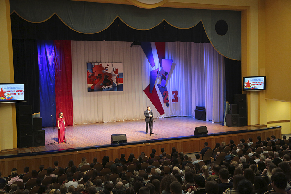 Праздничный концерт открылся тематическим фильмом, рассказывающим историю праздника. Участники студенческого театра эстрадных миниатюр воплотили на сцене образы воинов разных лет, рассказали о духовной мощи России и подвигах её народа.
