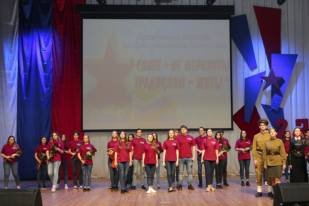 Праздничный концерт ко Дню защитников Отечества «Славе – не меркнуть! Традициям – жить!» в рамках Года памяти и cлавы, объявленного в честь 75-летия Победы советского народа в Великой Отечественной войне, состоялся в молодежном культурном центре