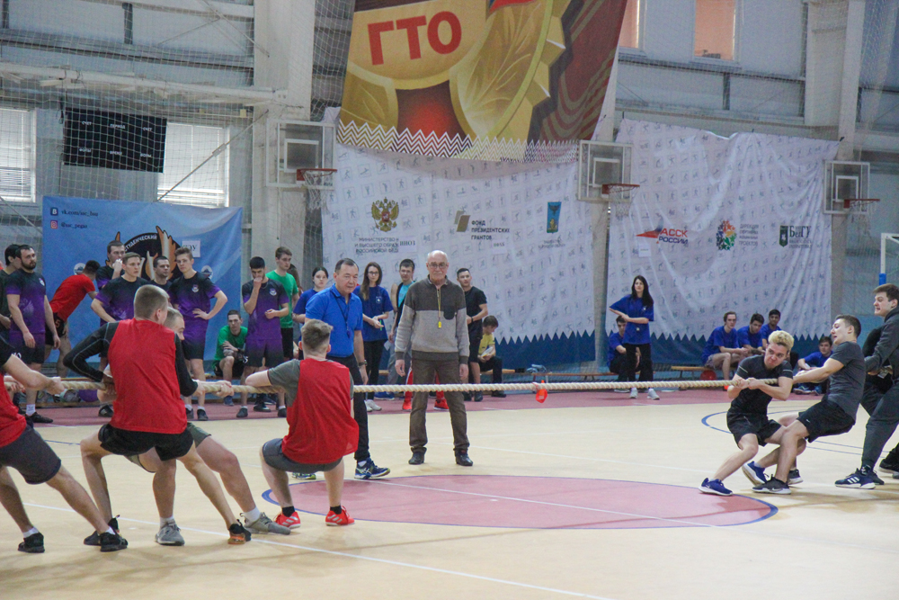 Студенты соревновались в эстафете с воздушным шаром, ведении баскетбольного мяча, прыжках на скакалке, перетягивании каната, в интеллектуальном конкурсе.