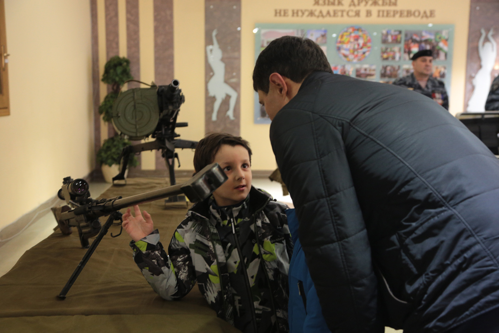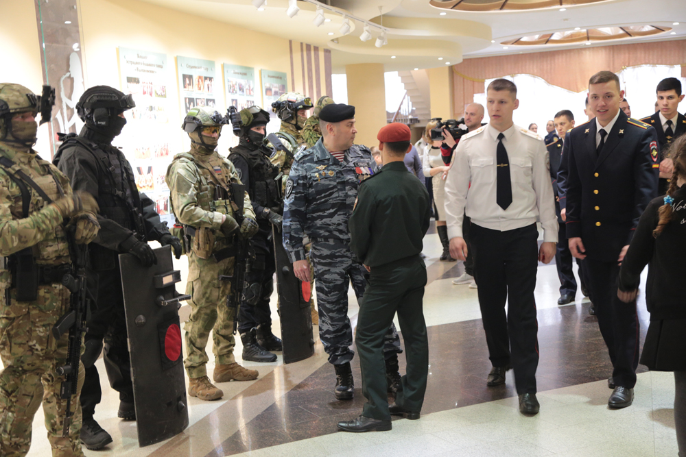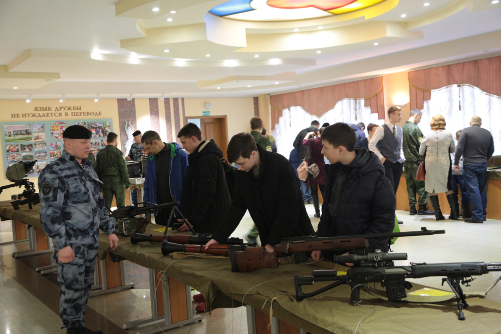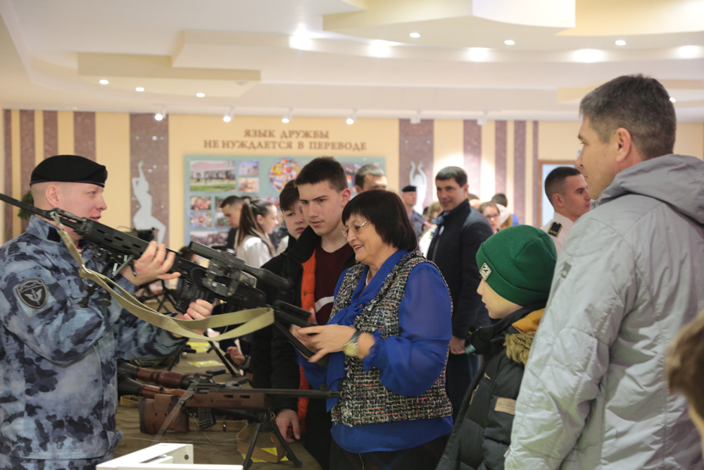 С буднями и судьбами служащих Росгвардии, ФСБ, МЧС и полиции знакомили гостей фестиваля фотовыставки «Герои среди нас» и «Росгвардия. Хранители спокойствия». В холле молодёжного культурного центра, где всех встречал сияющий медью ректорский духовой оркестр, развернулась другая выставка, на которой экспонировались периодические издания Росгвардии, образцы стрелкового оружия: пистолет Макарова, легендарные автоматы и пулемёты Калашникова, снайперские винтовки различного назначения, гранатомёты, а также современные средства связи и передачи данных, атрибуты экипировки эксперта-подрывника, сапёра и представителей других родов войск. Кроме того, у офицеров Росгвардии каждый заинтересованный студент мог получить информацию о военных учебных заведениях и о службе по контракту.
