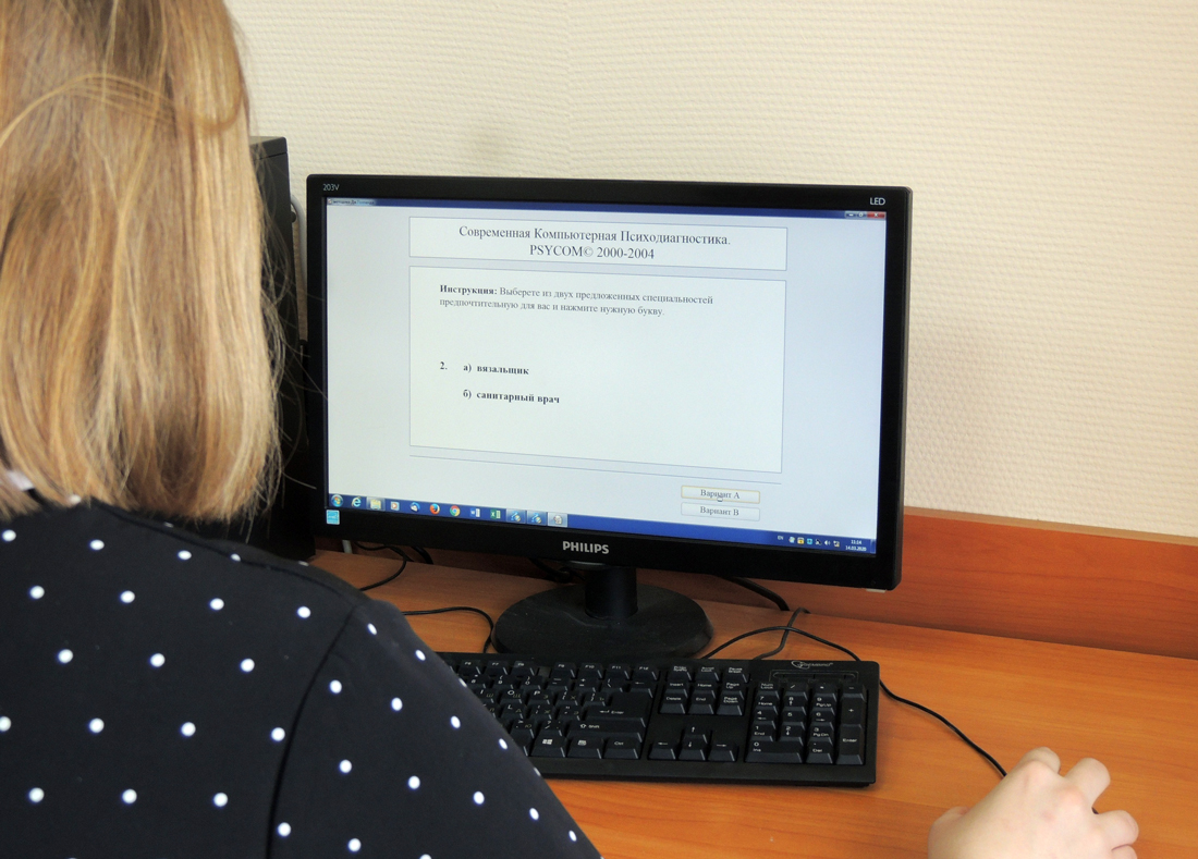 Второй этап Дней открытых дверей факультетов прошёл на базе Психологической службы НИУ "БелГУ", где абитуриенты приняли участие в психологической диагностике профессиональной направленности личности. Такая форма профориентационной работы, инициированная кафедрой психологии под руководством её заведующей Валентины Гребневой, стала в педагогическом институте НИУ «БелГУ» традиционной. Преподавателями кафедры Светланой Москаленко, Оксаной Мирошниковой, Людмилой Кузнецовой и другими преподавателями проводится психологическое тестирование, направленное на определение у будущих абитуриентов склонности к профессиям психолого-педагогического профиля. По словам преподавателей, профессиональная диагностика носит комплексный характер и включает такие аспекты как: определение индивидуально типологической и социально-профессиональной направленности абитуриента, а также выявление профессиональной мотивации будущих педагогов и психологов. В очередном тестировании приняли участие старшеклассники из школ Белгорода, Белгородской области, а также Орла, Воронежа, Воронежской, Липецкой и Архангельской областей. С помощью автоматизированных психологических методик – «Модифицированный портретный тест Л. Сонди», «Определение профессиональных склонностей (Тест Л. Йовайши)», «Оценка профессиональных типов личности Дж. Голланда» каждому школьнику был составлен индивидуальный профиль профессиональной направленности абитуриента, а также предложен перечень рекомендуемых профессий. Школьники пообщались со студентами-волонтёрами, обучающимися на факультете психологии, которые поделились «секретами» студенческой жизни и предложили помощь в дальнейшем сопровождении на этапе поступления и адаптации первокурсников.