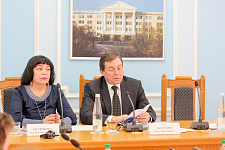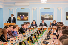 Участниками встречи ректора НИУ «БелГУ» Олега Полухина со студенческим активом вуза стали заместитель председателя избиркома Белгородской области Владимир Троян и заведующая кафедрой конституционного права юридического института, профессор Марина Мархгейм.