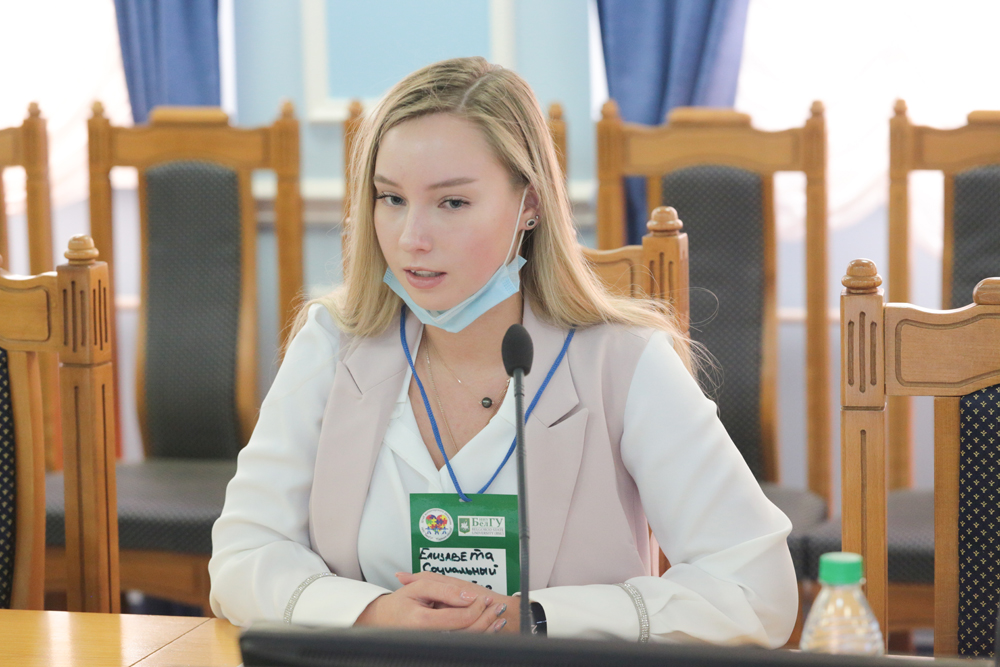Председатель Штаба волонтёров «Горячие сердца» НИУ «БелГУ», советник ректора II созыва Кристина Шевцова рассказала о деятельности Штаба в период распространения коронавирусной инфекции на территории Российской Федерации и представила подробно его структуру. Студентка отметила, что в настоящее время Штаб волонтёров включает в себя 743 человека и девять тематических подразделений. Советник ректора акцентировала особое внимание на оперативном освещении работы волонтёрского корпуса на информационных ресурсах университета, в том числе в соцсетях, и своевременном информировании студентов, а также представила перспективы развития штаба.