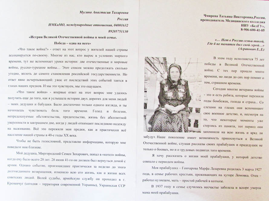 В НИУ «БелГУ» проходит патриотический онлайн-конкурс эссе среди обучающихся вуза «История Великой Отечественной войны в моей семье. Победа одна на всех»