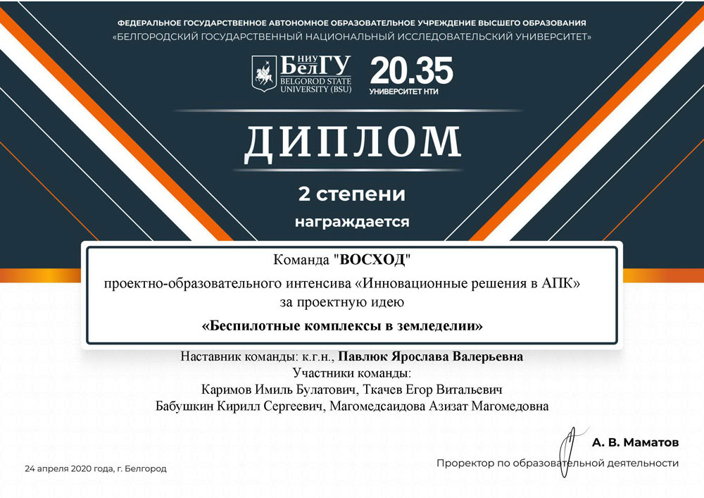 Проектно-образовательный интенсив был организован НИУ «БелГУ» совместно с университетом Национальной технологической инициативы 20.35. Как рассказали организаторы, мероприятие представляло собой проектное обучение студентов для развития у них компетенций технологического и социального предпринимательства, которое направлено на вовлечение студентов в решение реальных производственных задач с использованием сквозных технологий.