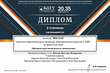 - I место – команда «БИМОЛЕКУЛА» с проектом «Разработка тест-системы для определения микроскопических грибков в ячмене», наставник Ульяна Круть;