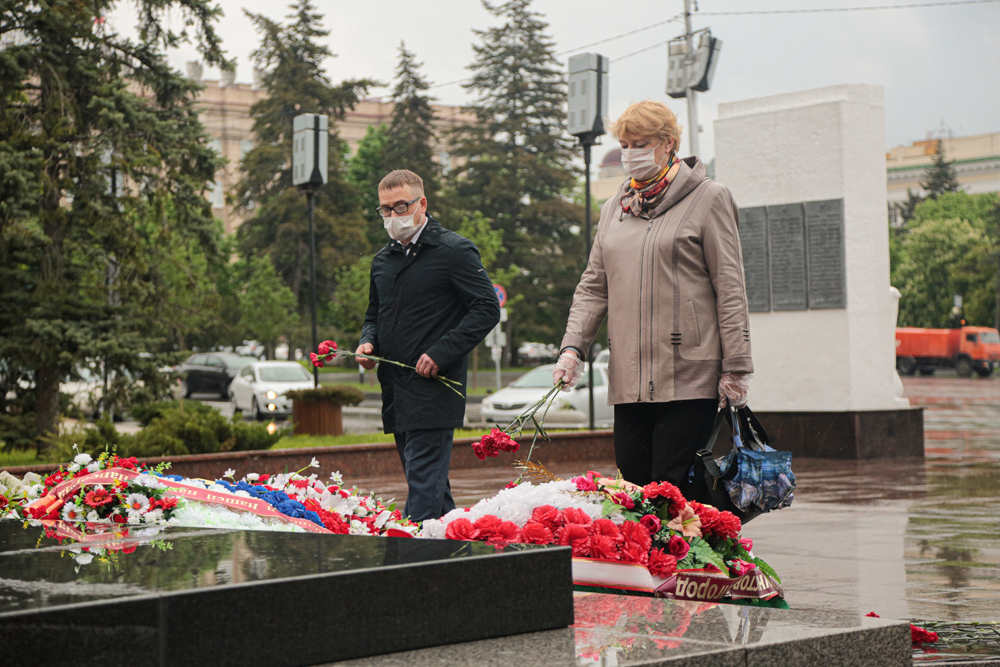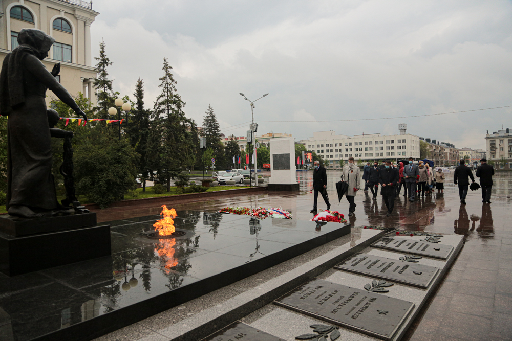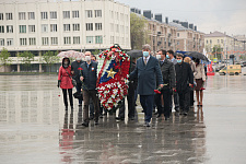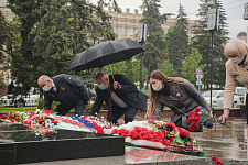 Представители НИУ «БелГУ» почтили память погибших в Великой Отечественной войне, возложив венки и цветы к памятнику Скорбящей Матери
