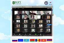 Заведующая кафедрой менеджмента Казахского национального университета им. Аль-Фараби Ардак Тургинбаева поздравила участников видеомоста с праздником Победы и поблагодарила организаторов за проведение мероприятия в условиях карантина.