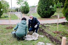 Представители руководства Белгородского госуниверситета и ботанического сада высадили ещё 11 сортов сирени в ботаническом саду НИУ «БелГУ»