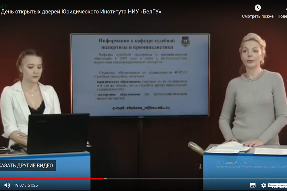 Запись трансляции Дня открытых дверей доступна на ютуб-канале НИУ «БелГУ» и в официальной группе НИУ «БелГУ» в социальной сети «Вконтакте».