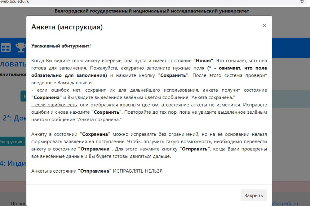После подачи документов абитуриенты смогут отслеживать статус своего заявления в личном кабинете. Абитуриентам, поступающим по результатам ЕГЭ, необходимо подать документы до 18 августа. Уточнить правила и сроки приёма можно на сайте приёмной комиссии НИУ «БелГУ».