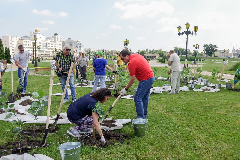 Под песни военных лет студенты и сотрудники Белгородского госуниверситета высадили три куртины саженцев сирени в форме 3-х пятиконечных звезд, каждая из которых включает 25 растений одного сорта с символичными названиями: «День Победы», «Адмирал Кузнецов» и «Маршал Бирюзов».