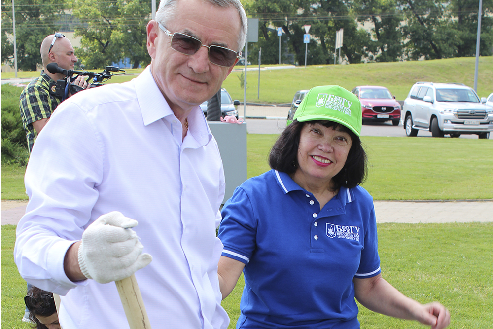 Председатель Совета ветеранов НИУ «БелГУ» Юрий Питинов поблагодарил всех, кто принял участие в символической закладке сиреневой аллеи.