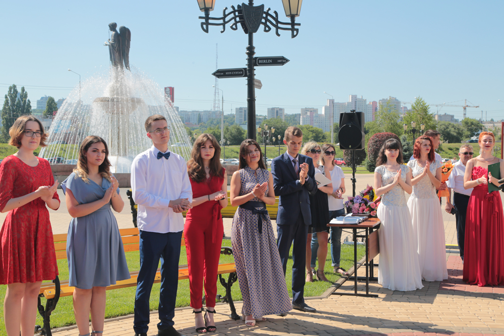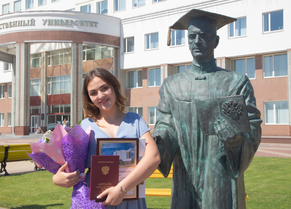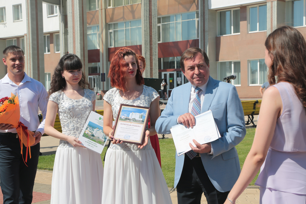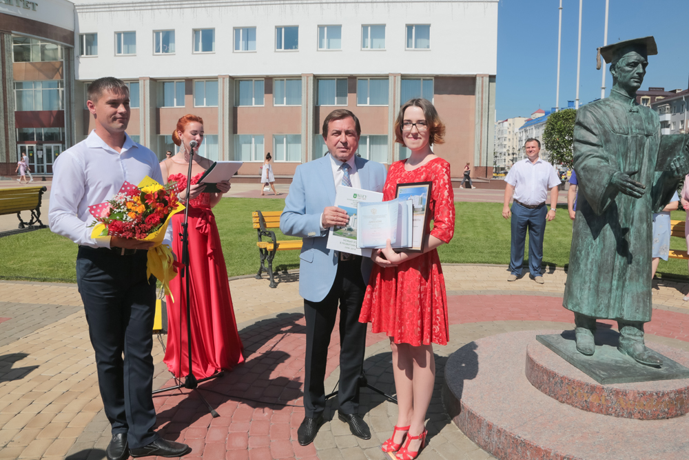 В долгую историю университета вошли выпускники институтов НИУ «БелГУ» Дмитрий Букин, Виктория Косенко, Артём Семиног, Анастасия Молдаванова, Альбина Габдракипова, Ирина Хмелевская, Илья Романов, Артём Репей, Валерия Сушкова, которым также вручат и Благодарственные письма Минобрнауки России. Дипломы с отличием и грамоты НИУ «БелГУ» получили также выпускницы инжинирингового и медицинского колледжей Виктория Свистун и Валерия Хруслова. Церемонию вручения дипломов своим выступлением украсила солистка Молодёжного культурного центра Анна Бирюкова. В завершение по традиции выпускники сделали фото на память у скульптуры профессора.