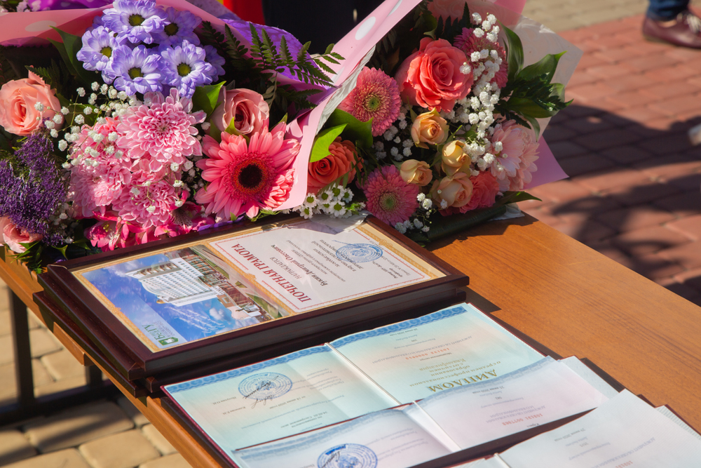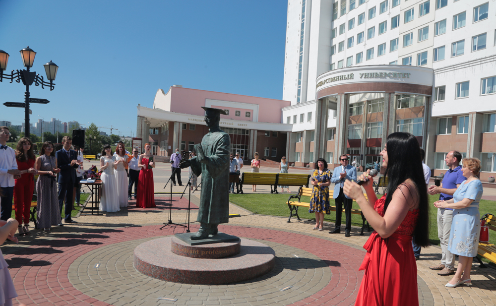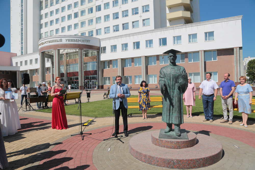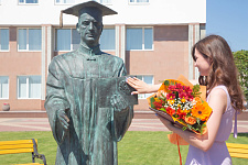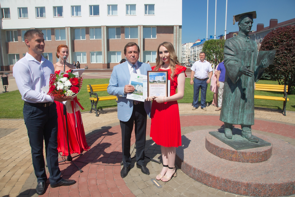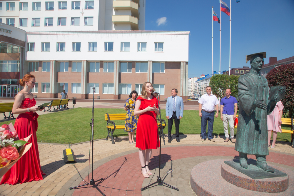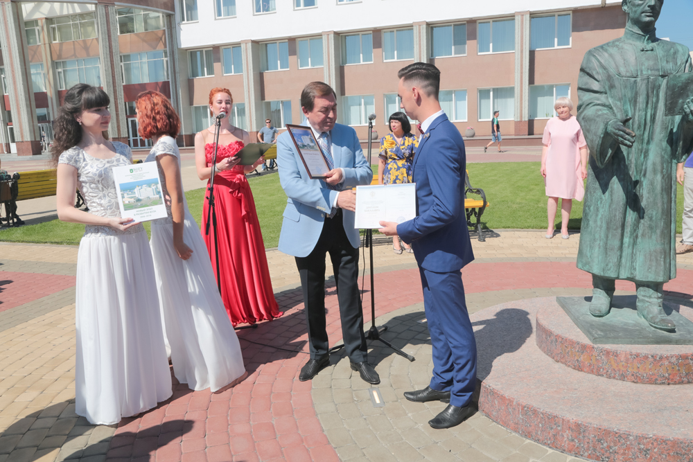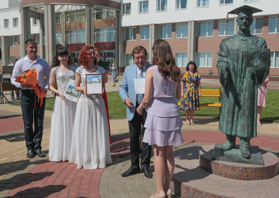 Торжественная церемония, которая станет новой традицией вуза, состоялась на университетской площади у скульптурной композиции «Вручение диплома»