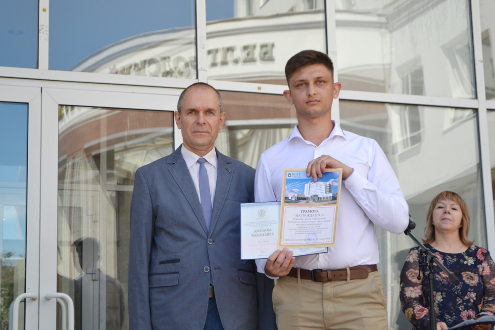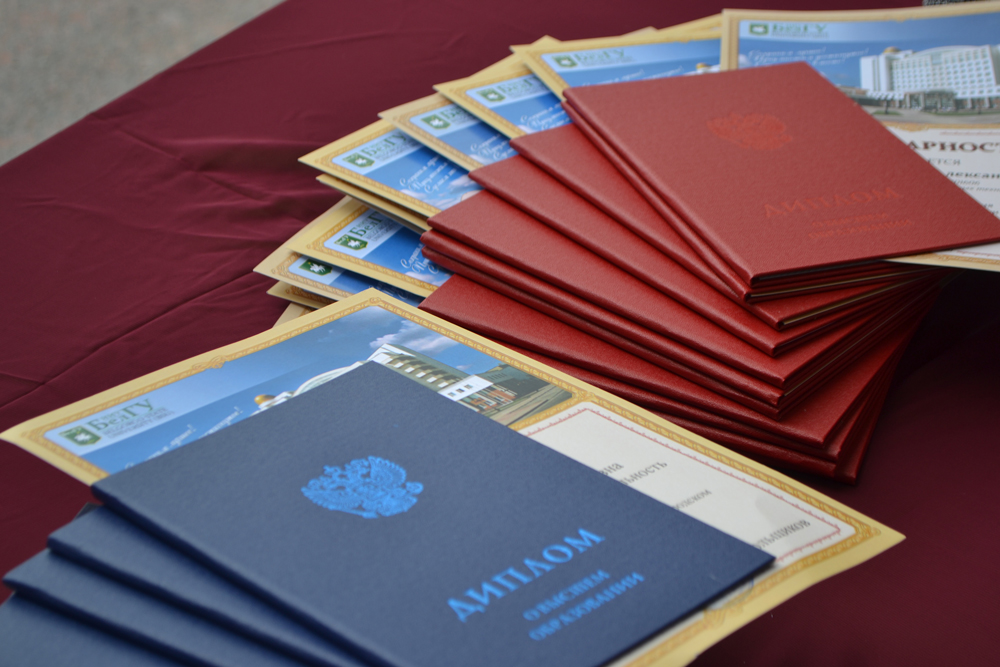 В этом году обучение в alma mater завершили 215 студентов по 18 направлениям подготовки. Из них 73 – удостоились дипломов с отличием. Торжественная церемония состоялась на открытом воздухе у здания Молодёжного культурного центра НИУ «БелГУ». Отметим, что среди выпускников есть и те, кто параллельно завершил обучение на факультете «Инженерный спецназ», получив удостоверения о повышении квалификации. Шестерым выпускникам вручили Благодарности ректора НИУ «БелГУ», профессора Олега Полухина за успехи в учёбе и значительные достижения в научной и общественной деятельности. Ещё 21 выпускник удостоился грамот дирекции института инженерных и цифровых технологий.
