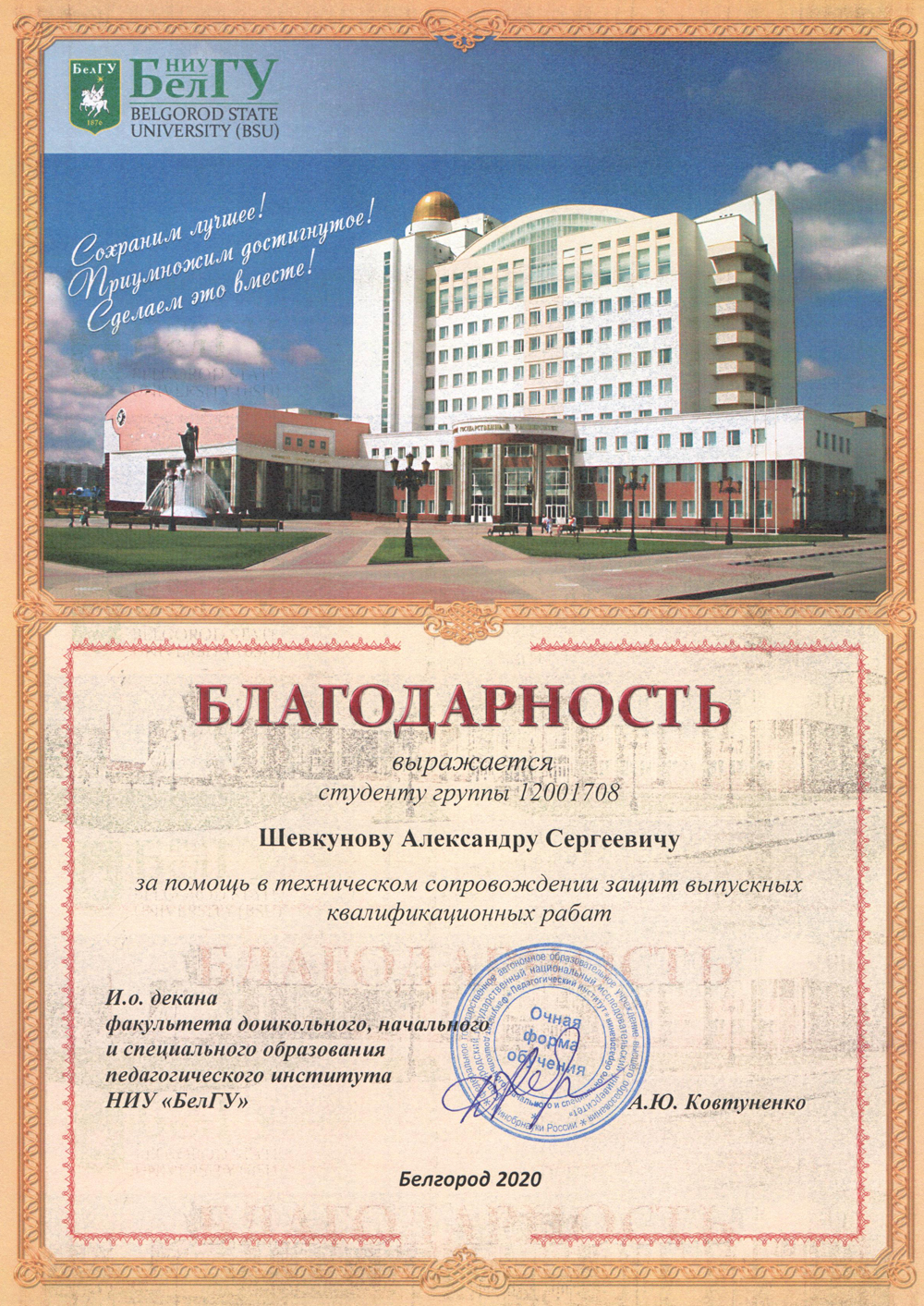 Труд цифровых волонтёров был отмечен, и студенты удостоились благодарностей руководителей структурных подразделений НИУ «БелГУ». В числе наиболее отличившихся – Юлия Устьянцева, Денис Лихачёв, Екатерина Киданова, Дмитрий Степанов, Александр Шевкунов, Никита Титов, Артём Костенко, Евгения Харченко и Довлет Бегенджев.